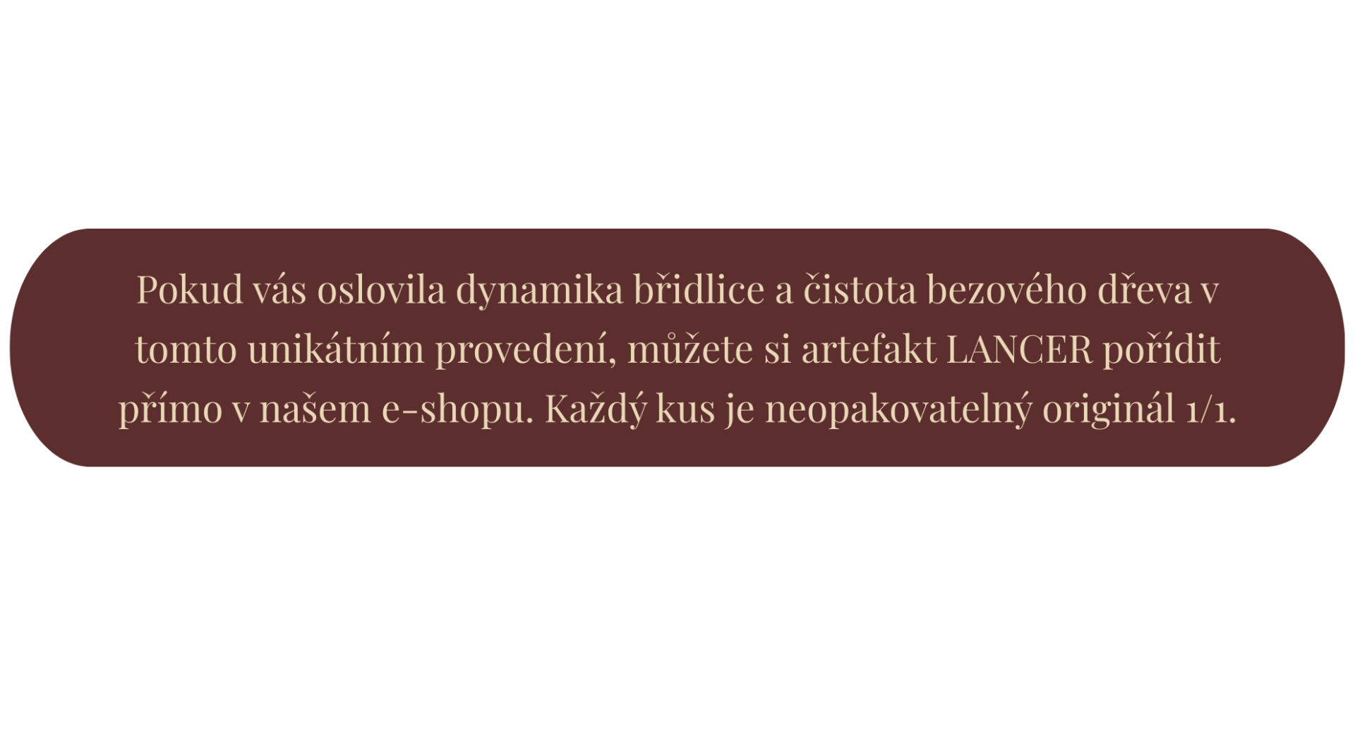Pátý kousek kolekce Archeonůž – LANCER. Jeho jméno vychází z latinského "lancea", tedy kopí. Tvar čepele připomíná hrot oštěpu – pevný, přesný a soustředěný v jediném směru. V jeho linii je obsažen pohyb vpřed, odvaha i energie průrazu.