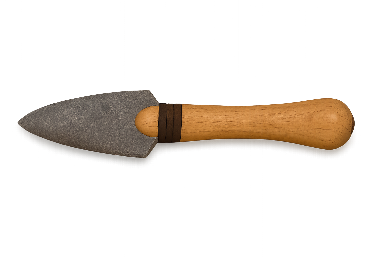 Tmavá břidlicová čepel a buková rukojeť vytvářejí jemný přechod mezi světlem a tmou, hmotou a prázdnem. UMBRA na první pohled nepřitahuje pozornost, ale přináší vyrovnanost a tichou sílu. Každý detail ručního zpracování nese klid a jistotu rukou, které mu daly tvar.