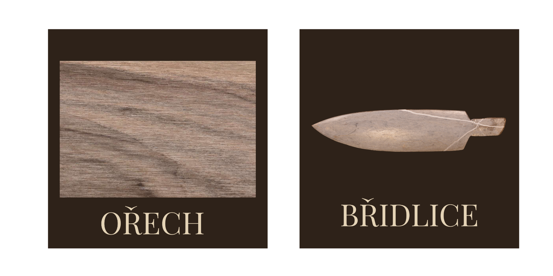 Čepel z tmavé břidlice působí pevným a vyváženým dojmem. Rukojeť z ořechového dřeva přináší teplo a přirozenou měkkost. Spolu vytvářejí celek, kde se potkává kámen a dřevo, chlad a teplo, stabilita a klid.