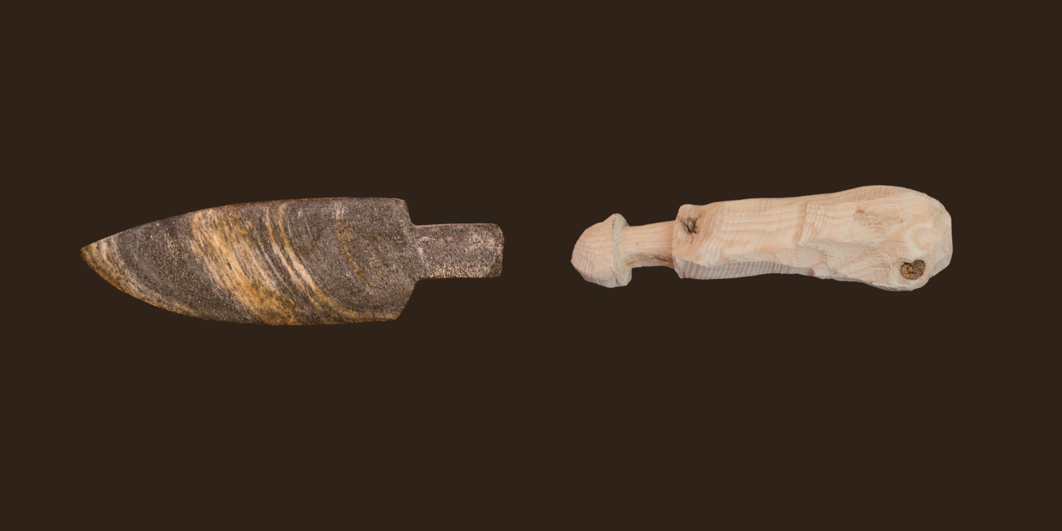 Čepel z ruly nese vrstvenou kresbu a přirozenou strukturu kamene, která působí klidně a jistě. Rukojeť z bezu s jemnou, teple světlou kresbou dodává celku lehkost a citlivost.