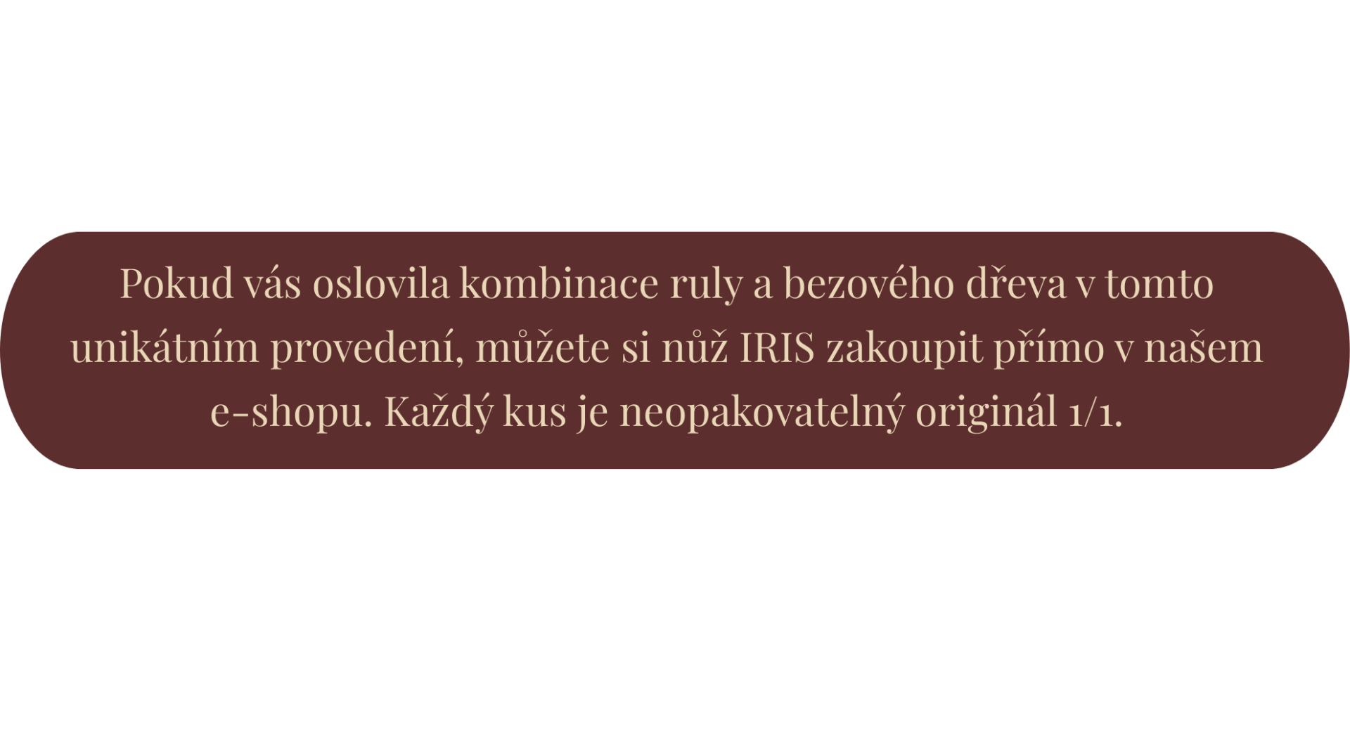 IRIS je dekorativní artefakt vytvořený pro ty, kdo dokážou ocenit tvar, strukturu a ruční práci. Není zbraní ani funkčním nástrojem – vznikl jako objekt, který má potěšit zrak i dotek, přinést klid a rovnováhu do prostoru.