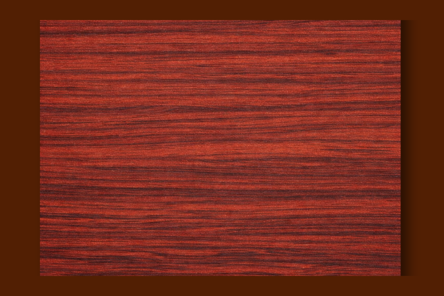 Padauk zaujme už svou barvou i kresbou. Má živý, výrazný tón a přirozenou hloubku, díky které působí teple, ušlechtile a sebejistě. Není to dřevo, které by se ztrácelo v pozadí. Má vlastní charakter a do celku vnáší energii i výraz.