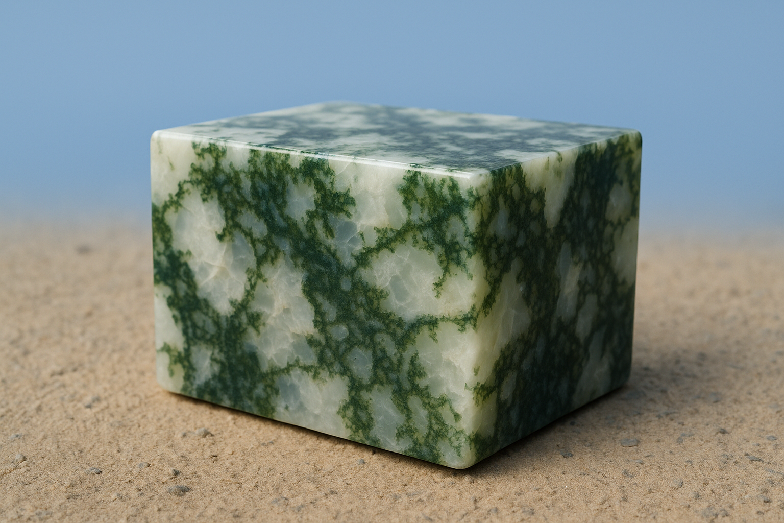 - Proč ano: vysoká tvrdost (6,5–7 Mohs), dobrá odolnost proti poškrábání, jedinečná estetika s kresbou připomínající přírodní scenérie.
