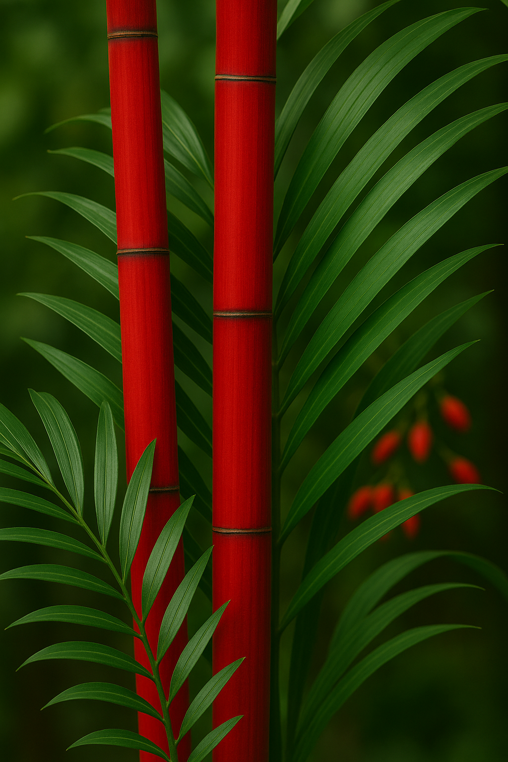 Červená palma je spojována s vitalitou, hojností a životní energií. Je symbolem tropické přírody a přináší pocit dynamiky, plodnosti a síly. Červenooranžové plody navíc podtrhují její vztah k energii slunce, radosti a prosperity.