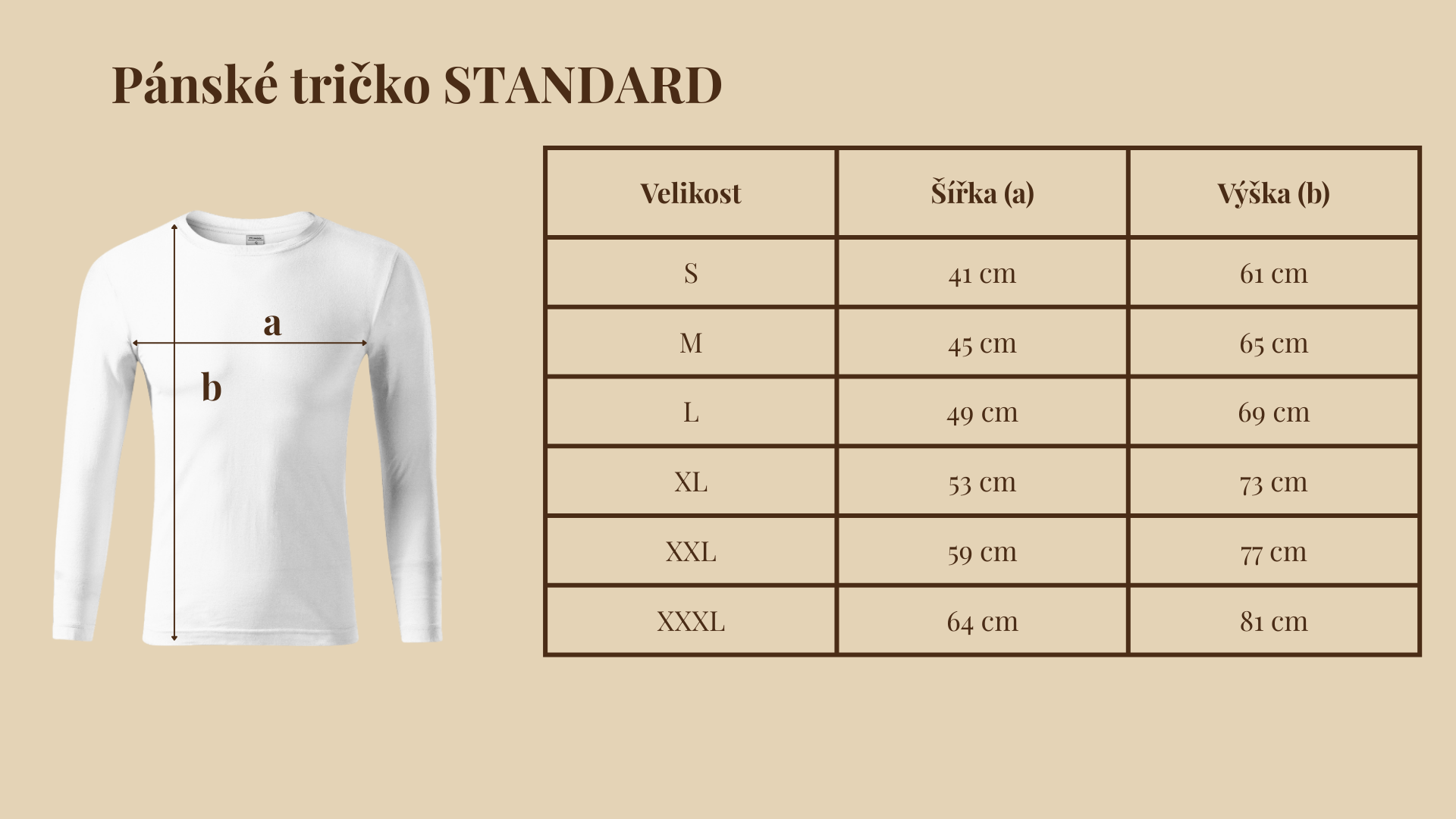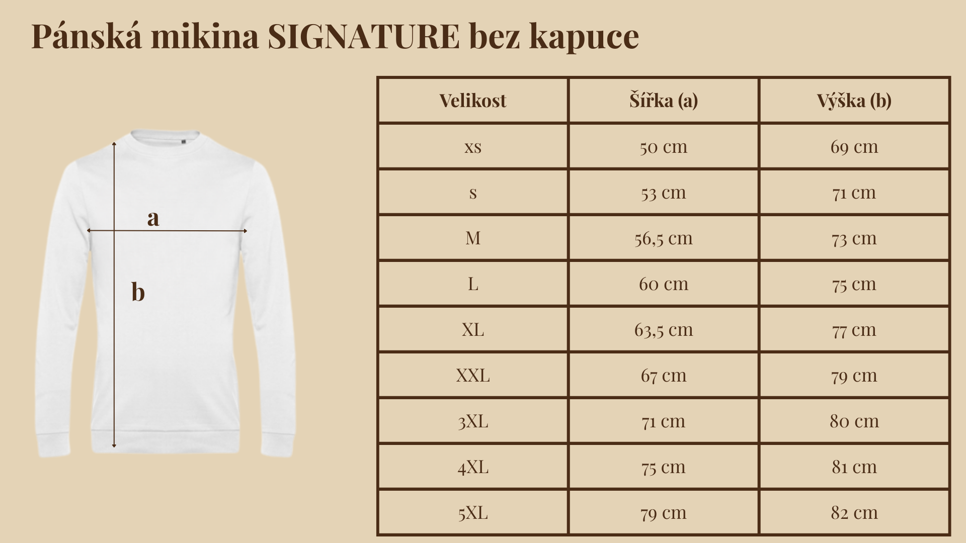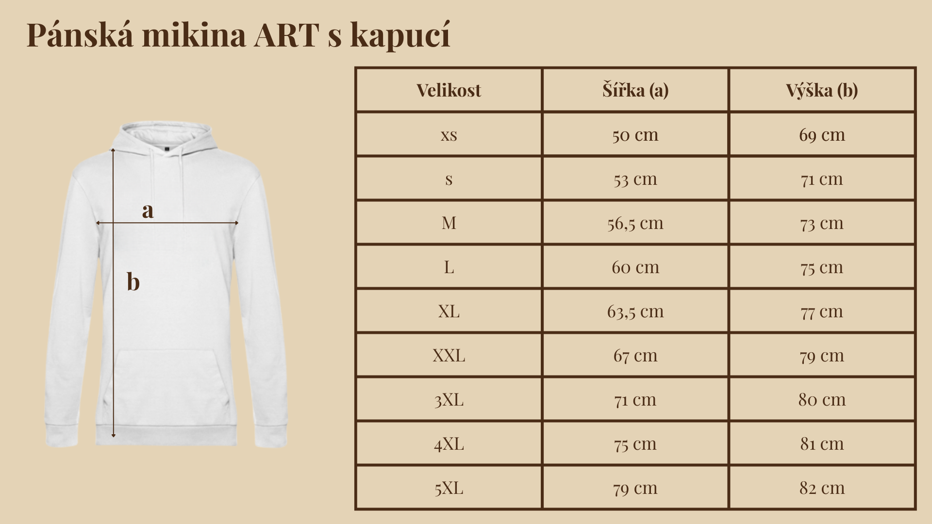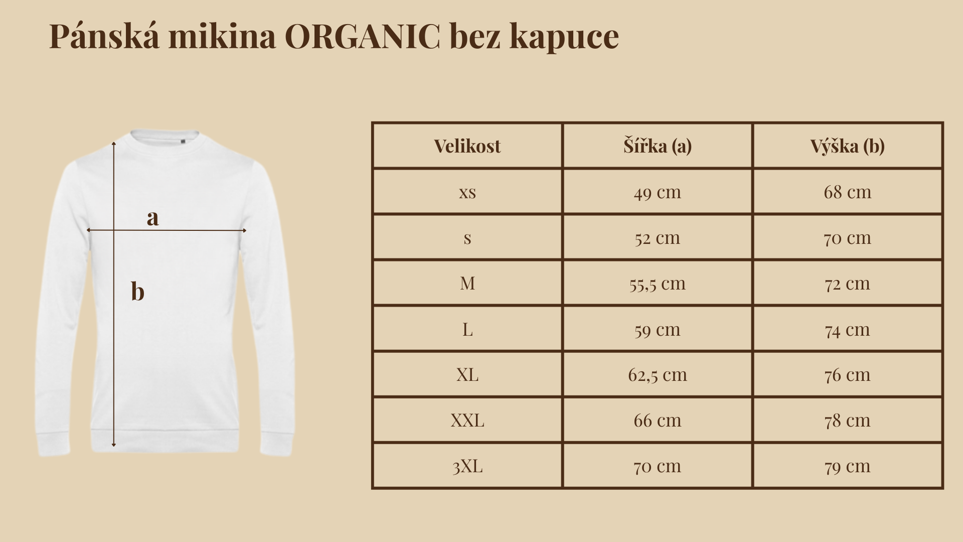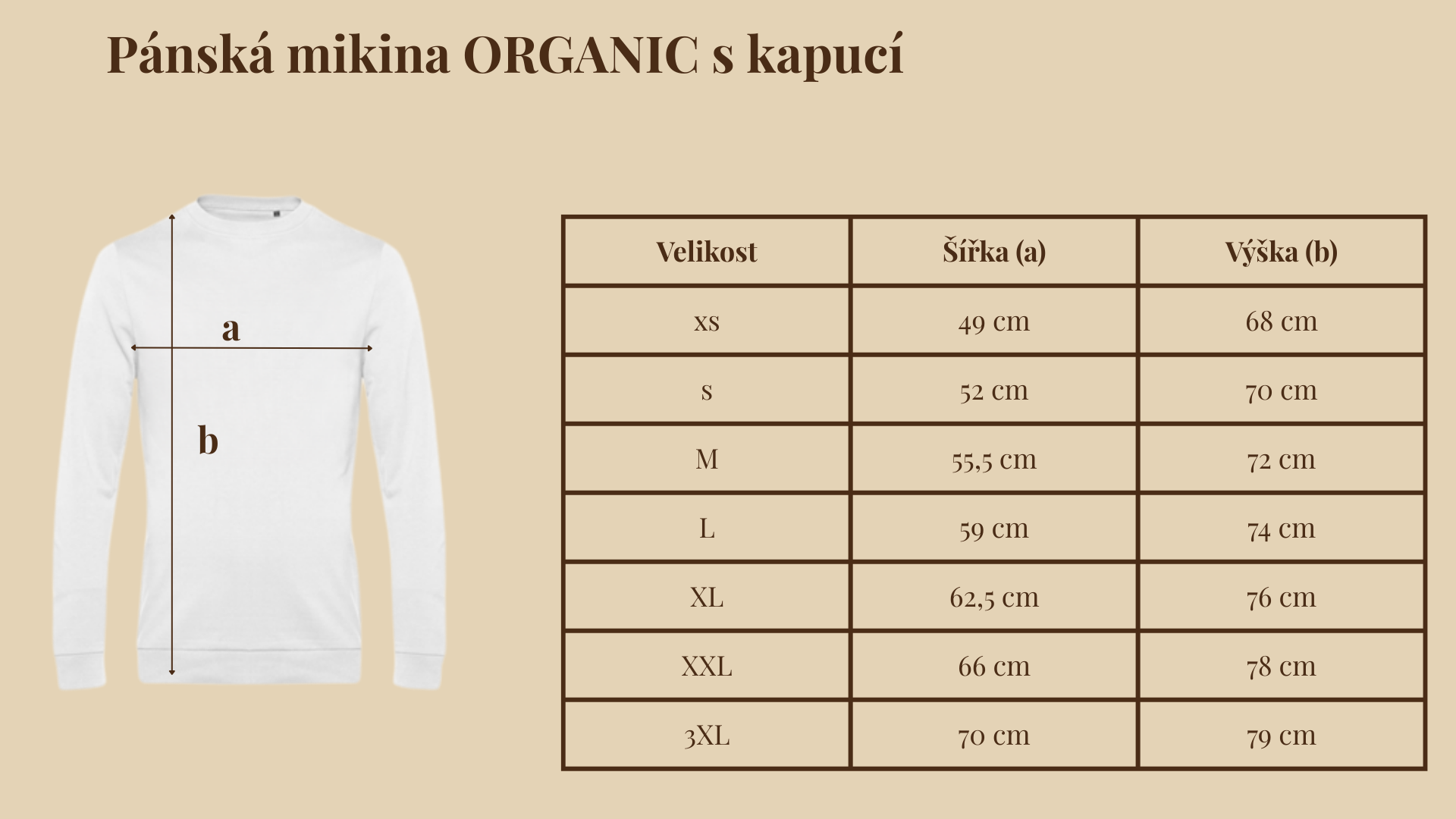 Zde najdete rozměry pánských triček a mikin z naší nabídky.