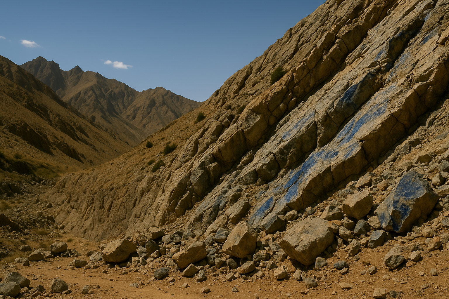 Lapis lazuli není samostatný minerál, ale metamorfovaná hornina, složená převážně z lazuritu (hlinitokřemičitan sodíku a vápníku), s příměsí kalcitu a pyritu. Intenzivní modrou barvu zajišťuje právě lazurit, zatímco pyrit vytváří typické zlatavé odlesky a kalcit světlé žilky nebo skvrny.