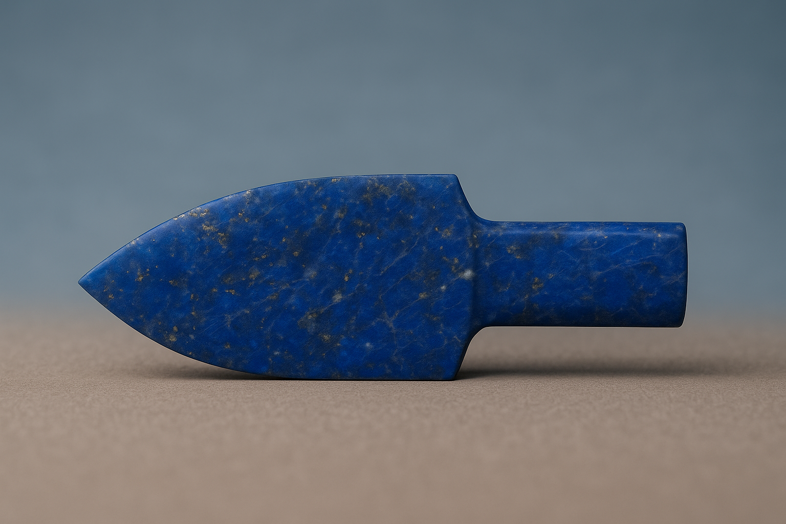 Dekorativní použití - Lapis lazuli je vyhledáván pro svou sytě modrou barvu posetou zlatavými inkluzemi pyritu, které připomínají hvězdnou oblohu. V nožích působí jako luxusní a vzácný materiál – čepel z lapisu má reprezentativní charakter a stává se skutečným ozdobným klenotem.