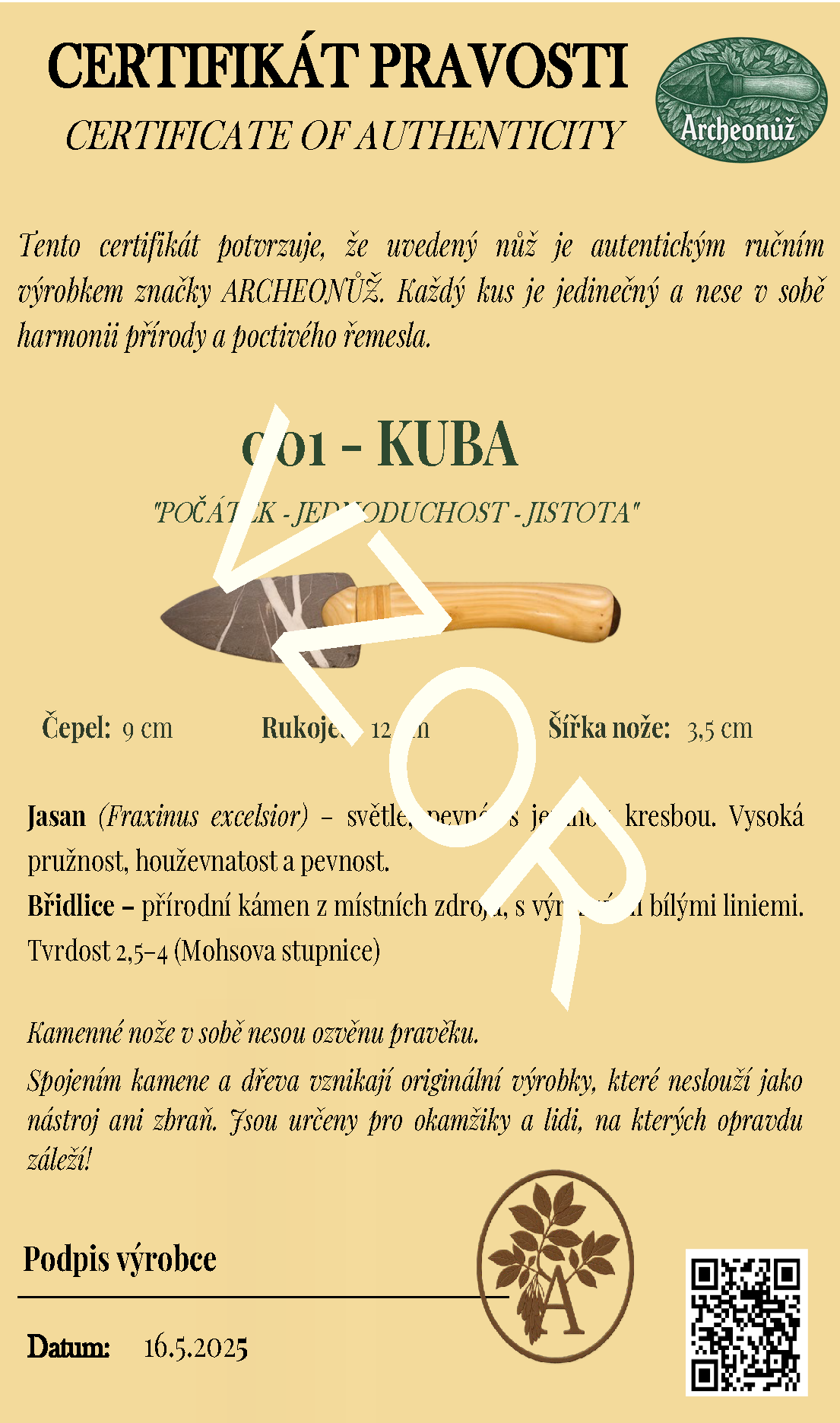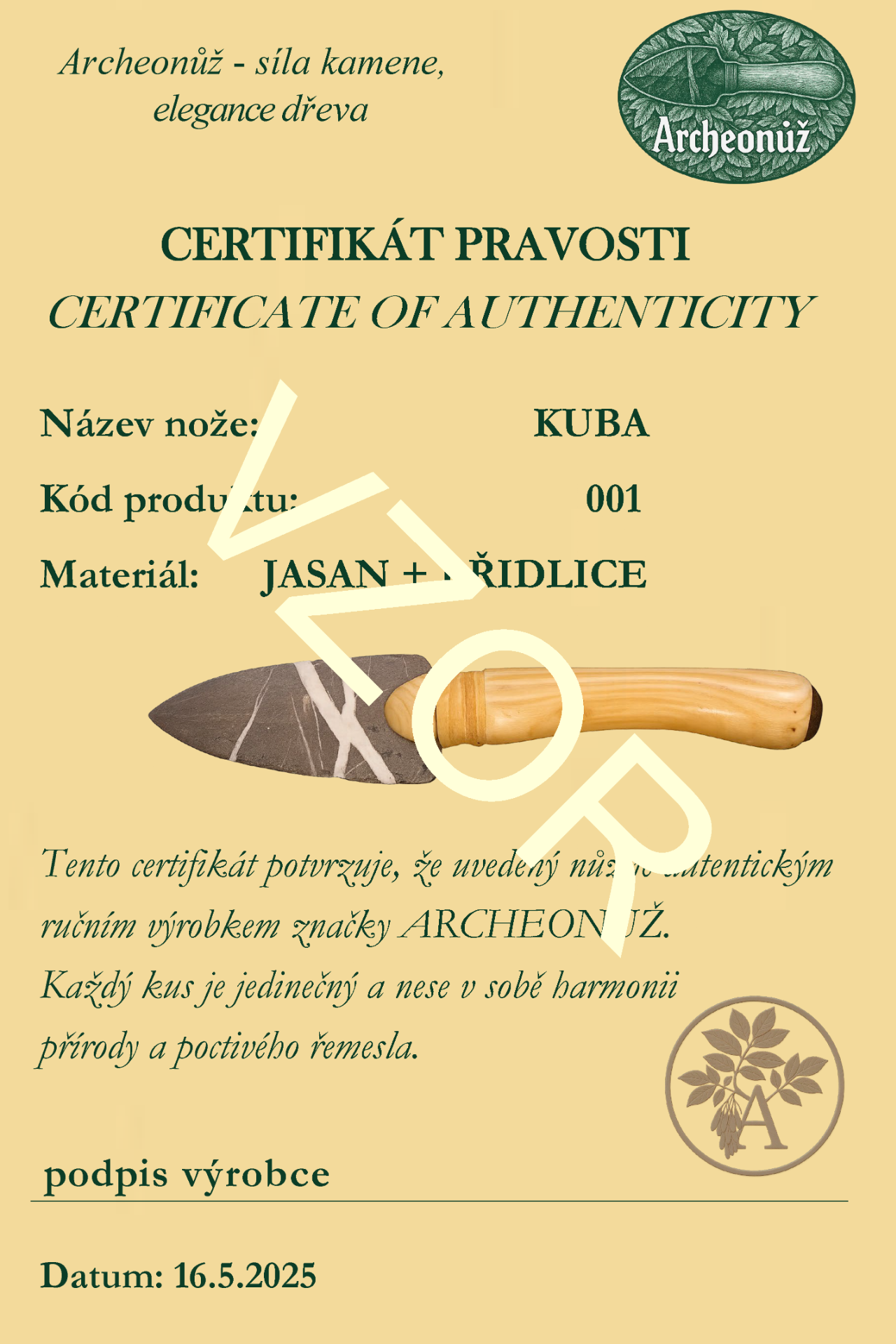 Ručně vyrobený originál z dílny Archeonůž - KUBA je