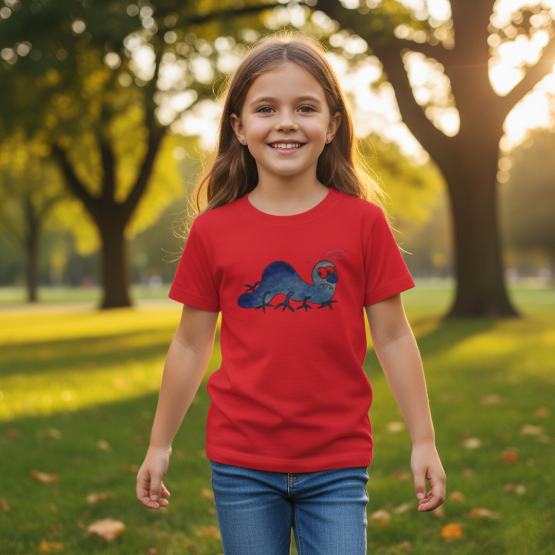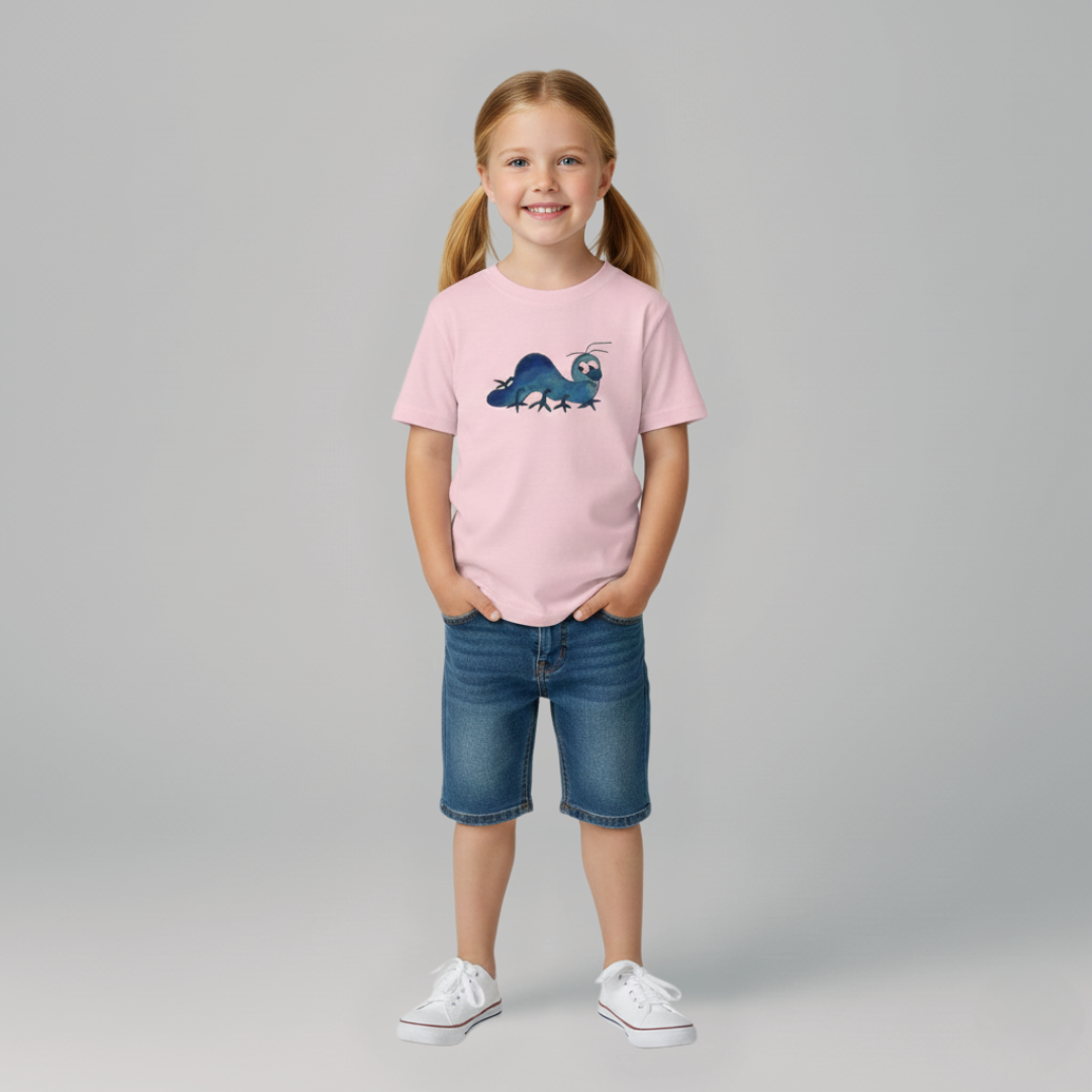 • jemný autorský motiv housenky v akvarelovém tónu