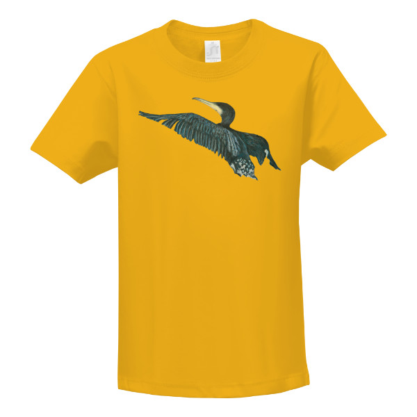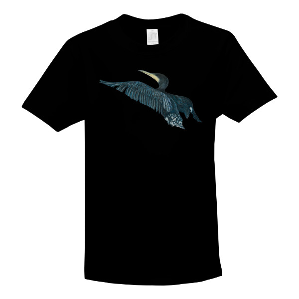 • autorský motiv kormorána přináší tričku jemně dynamický tón.