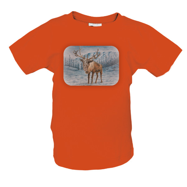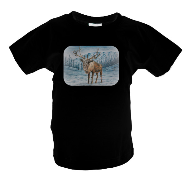 • autorský motiv ilustrace soba v zimě dodává tričku jemný, čistý dojem.