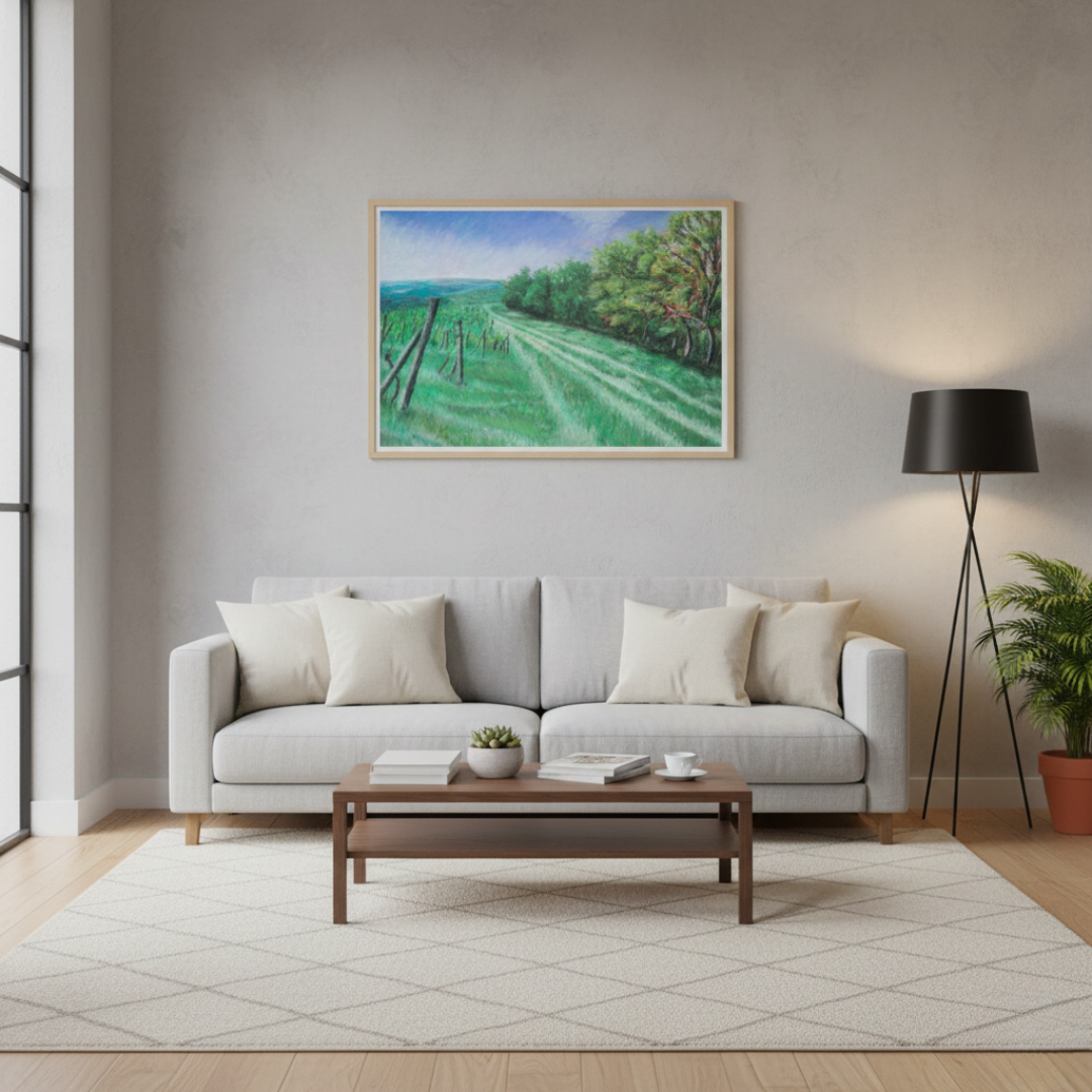Obraz přinese do interiéru lehkost, teplo a klidnou atmosféru krajiny kolem Pouzdřan.
