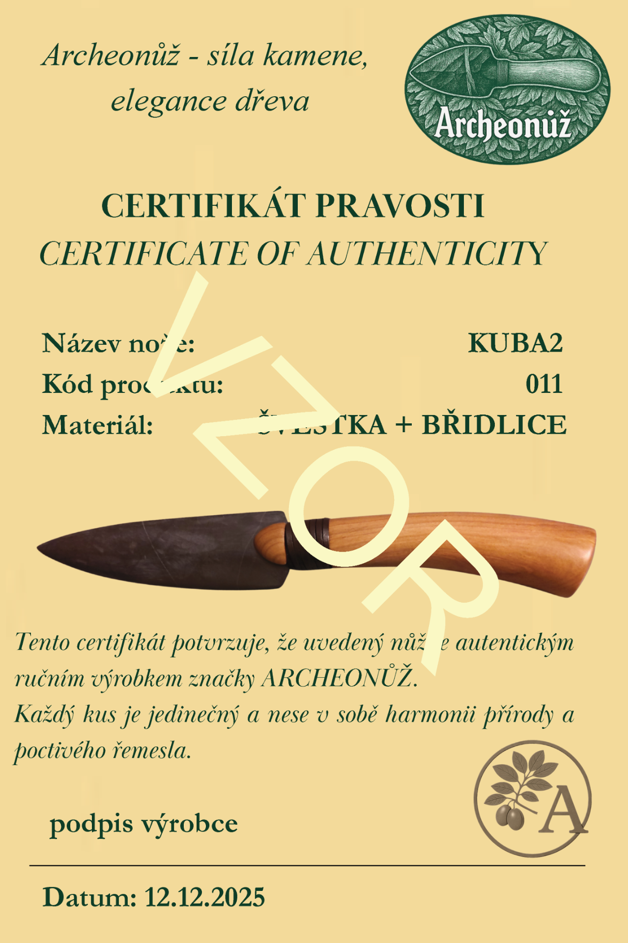 V tomto duchu pro vás rádi vytvoříme podobný břidlicový artefakt. Při výrobě na zakázku upozornňujeme na to, že každý kus se mírně liší strukturou i tvarem rukojeti a kresbou dřeva.