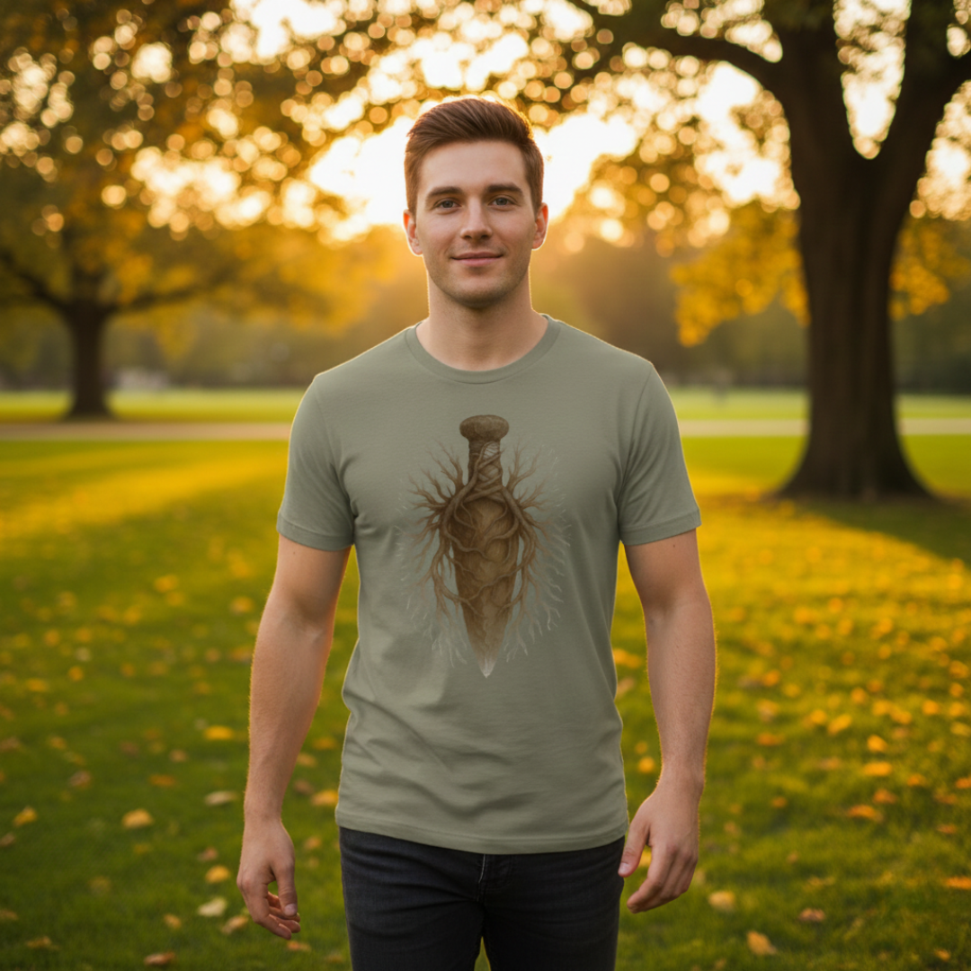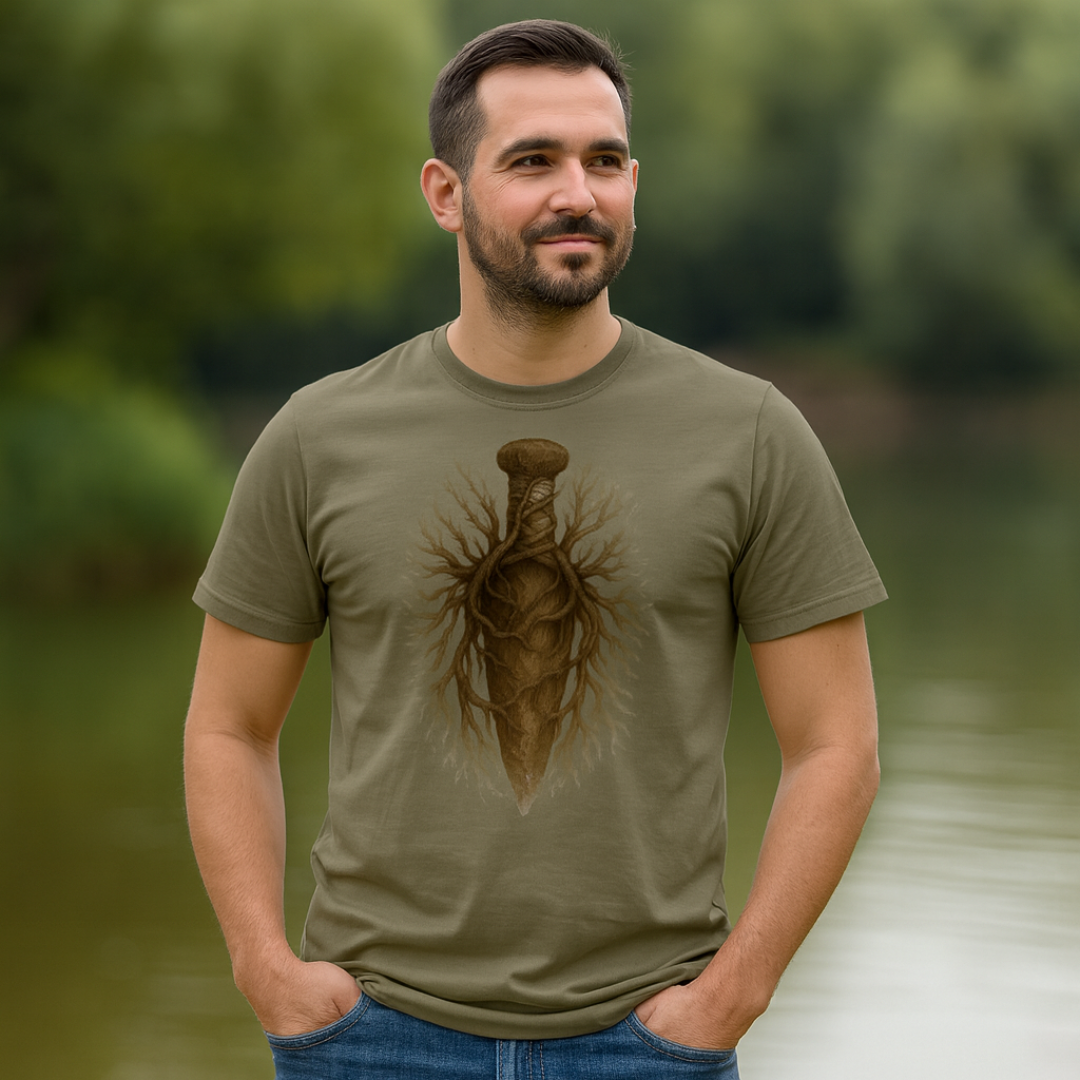 - motiv ve stylu Archeonůž působí na tričku kompaktně a dodává mu jasně profilovaný výraz