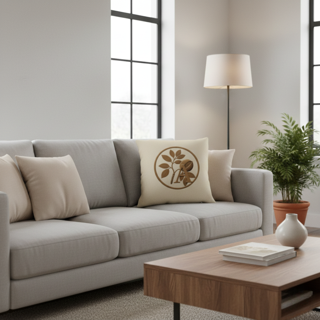 Polštář s potahem z imitace lnu o velikosti 40 x 40 cm.