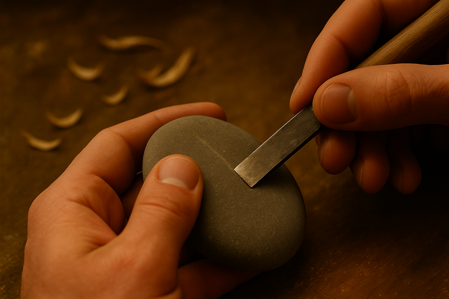 Čas se zpomaluje. Prostor naplní prach opracovaného kamene i vůně čerstvě opracovaného dřeva, zvuk broušení se střídá s jemným šelestem smirkového papíru. Každý pohyb odhaluje něco nového – kresbu, která se zjeví až pod správným úhlem světla, jemnou linku letokruhů, nečekaný odstín, nebo křivku, která se sama nabízí.