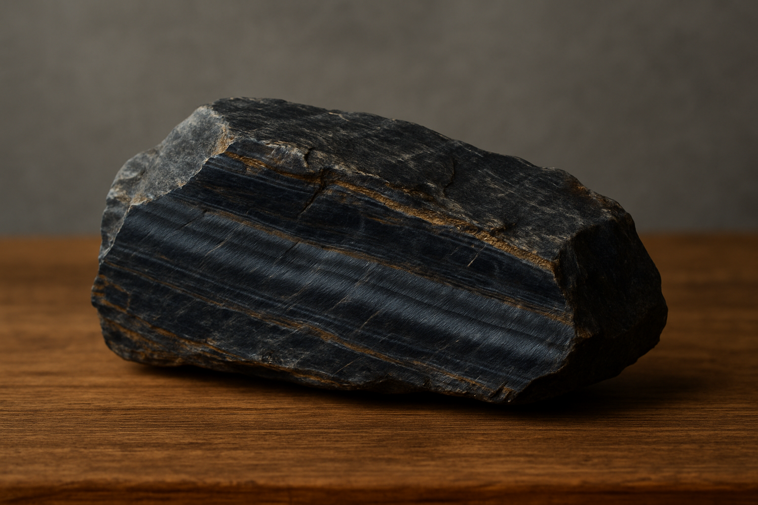 - Barva: Nejčastěji modrošedá, někdy s nádechem do modročerné. Lesklé pruhy vytvářejí proměnlivé světelné efekty, známé jako "kočičí oko".