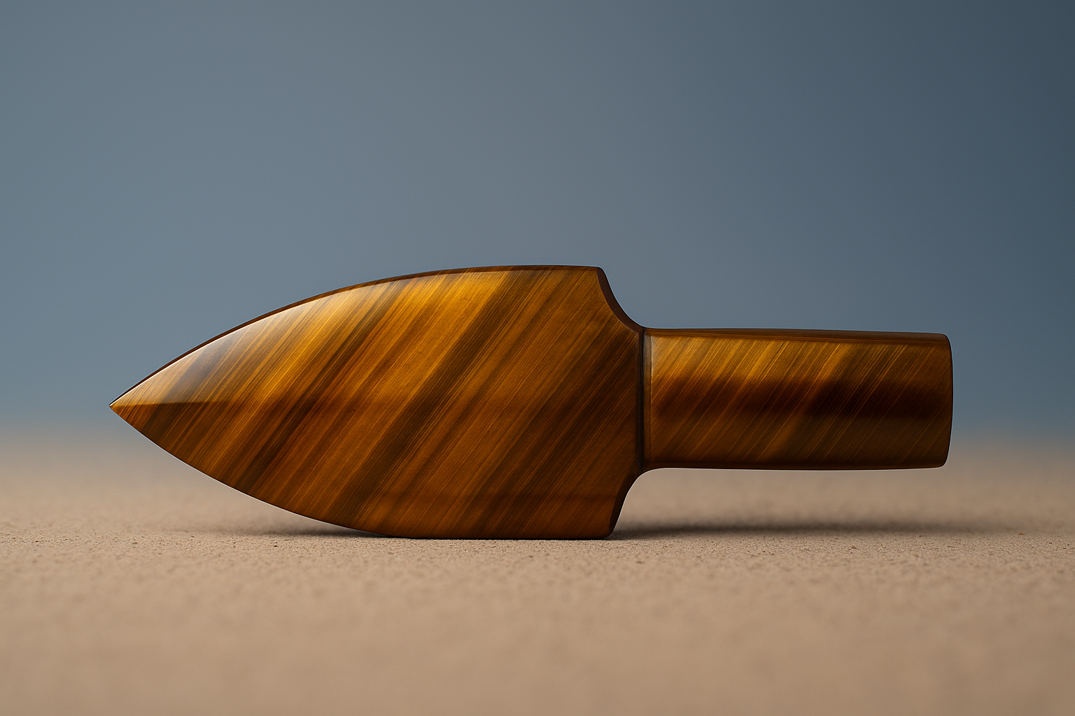 Dekorativní použití: Tygří oko se uplatňuje zejména v ozdobných a sběratelských nožích. Díky svému hřejivému lesku a proměnlivým zlatohnědým odleskům působí výjimečně atraktivně. Čepel z tohoto kamene vyniká především symbolickou a estetickou hodnotou, která podtrhuje originalitu a osobitý charakter nože.
